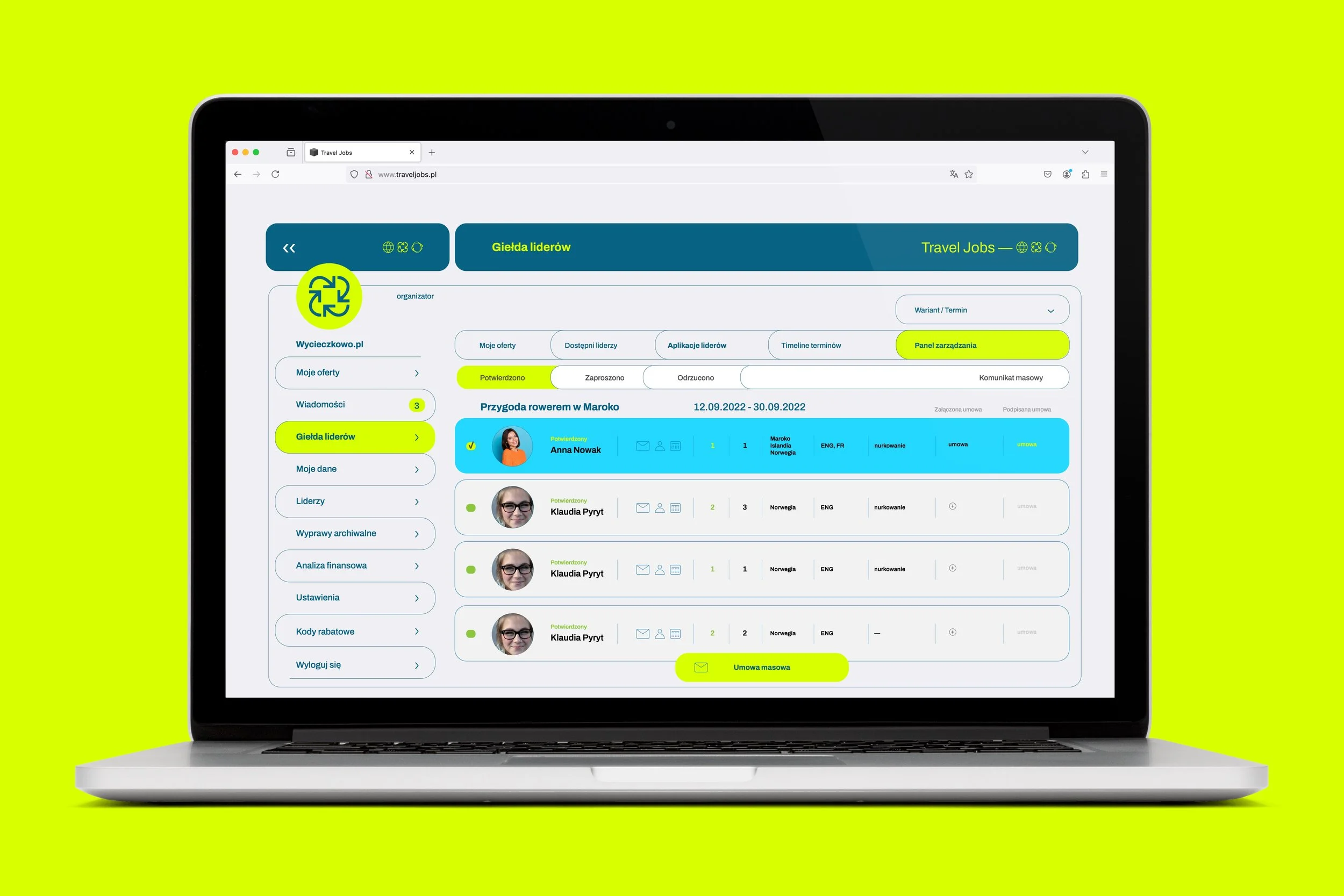 Masz pełen wgląd do swoich ofert oraz podjętych współpracy. Zarządzasz zbliżającymi się wyjazdami i prowadzisz komunikację oraz sprawy administracyjne w jednym miejscu.